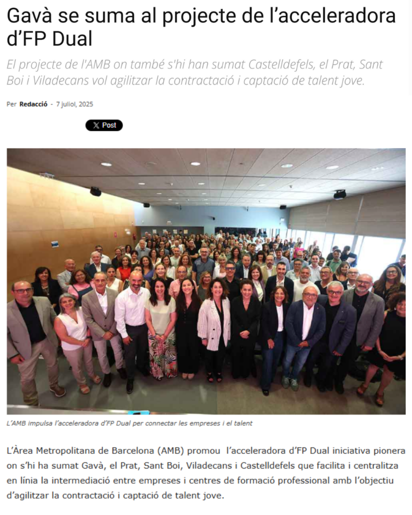 L’acceleradora d’FP dual és un projecte pilot impulsat per l’AMB i executat per la Fundació BCN Formació Professional.