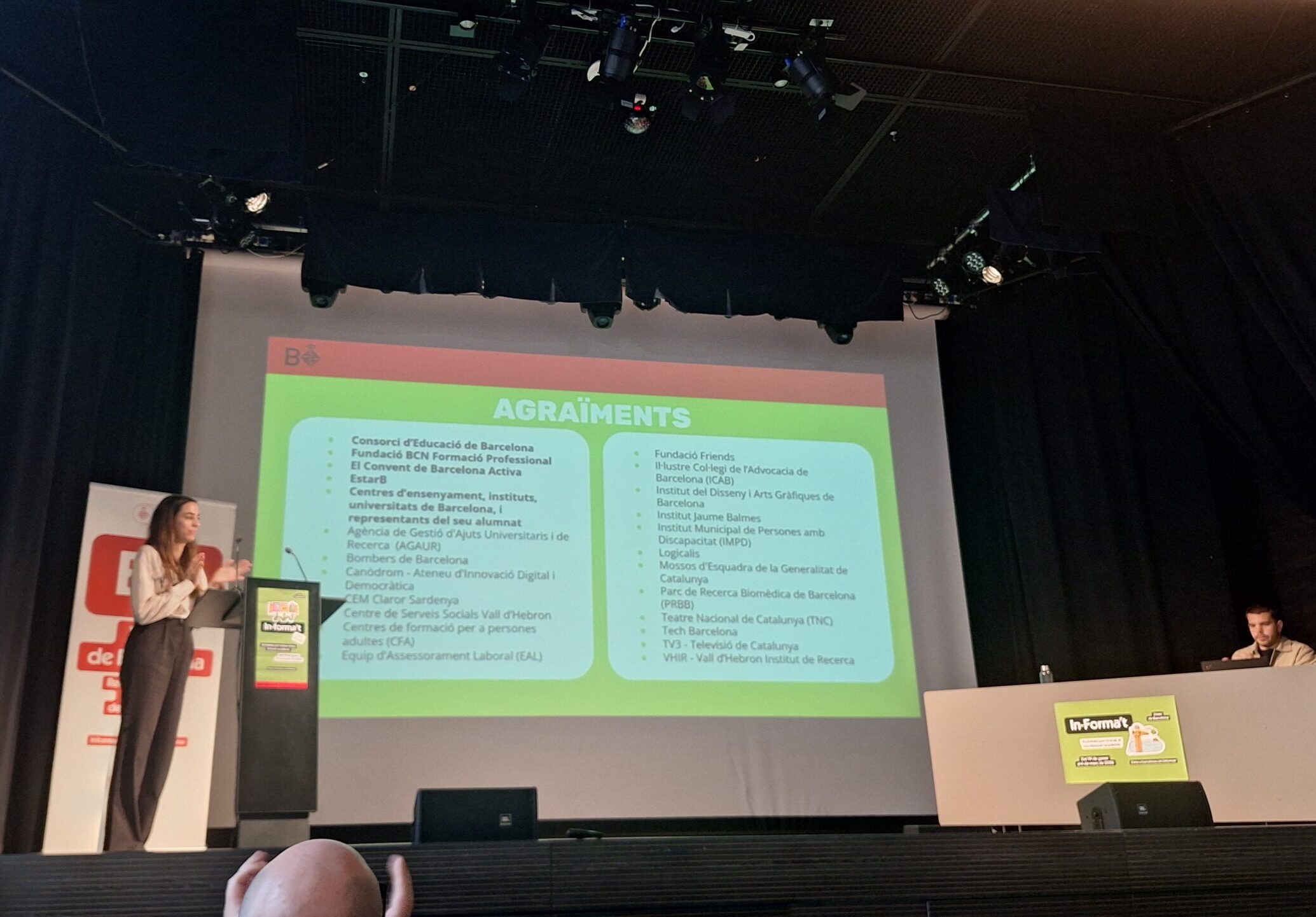 El día 19 de enero la Fundación asistió al acto de celebración de los 18 años de la campaña In-Forma’t 2026, impulsada por el Departamento de Juventud del Ayuntamiento de Barcelona, con quien colaboramos para promover la orientación académica de los y las jóvenes de la ciudad.