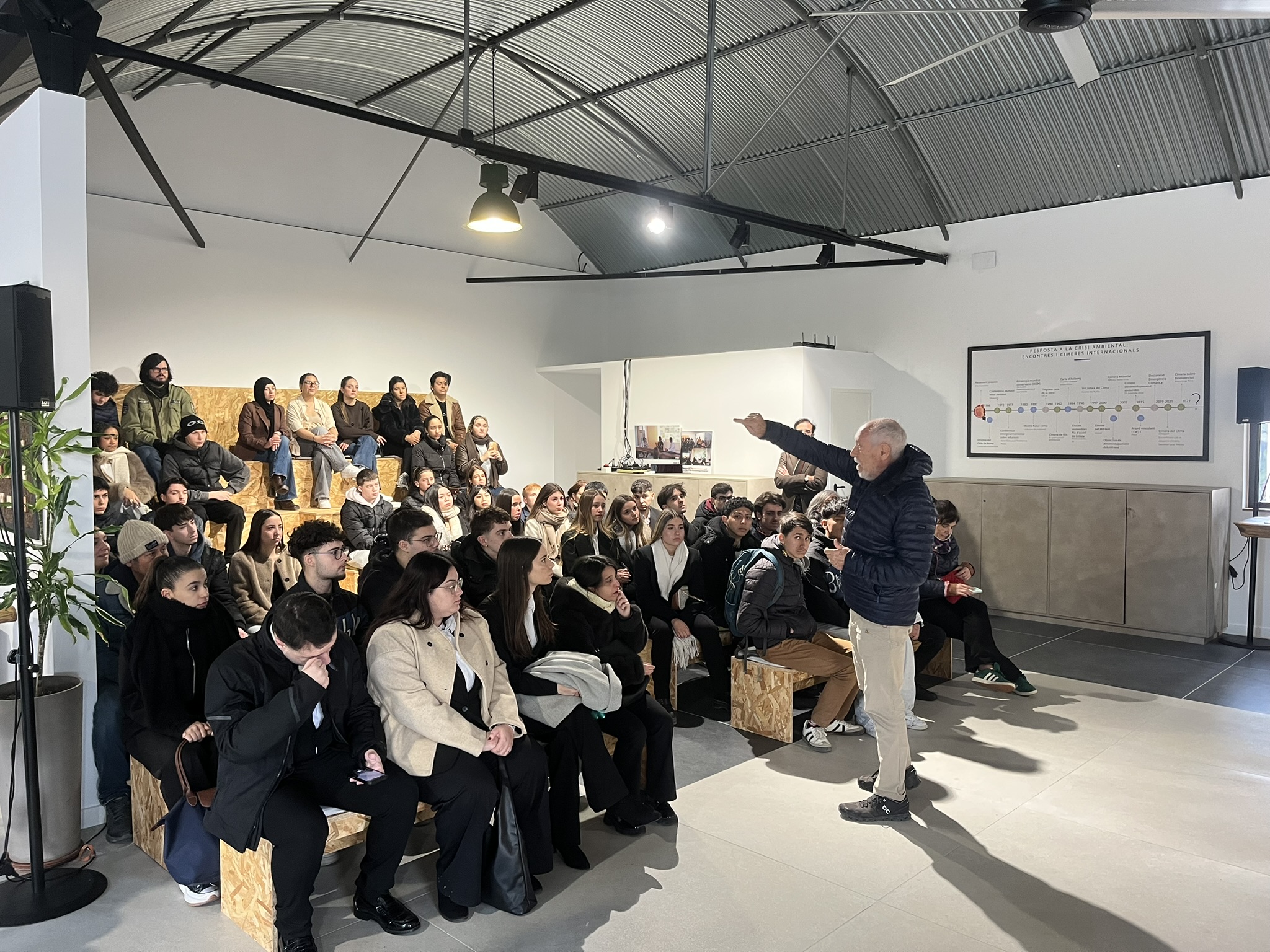 El punt central de la seva participació va ser la ponència principal dins la Festa Anual de les Arts Gràfiques, on va compartir un recorregut complet sobre l’estat actual de la indústria creativa a Europa, les tendències del sector i el paper de Barcelona com a hub internacional de disseny, animació i innovació tecnològica. Aquesta ponència —estructurada a partir del treball intensiu que han desenvolupat al projecte: guions, diapositives, casos reals, l’anàlisi de portafolis, la projecció professional i la introducció a plataformes com “The Rookies”— va ser rebuda amb gran interès i participació per part dels estudiants. La seva curiositat i energia van convertir la sessió en un espai de diàleg i aprenentatge bidireccional.