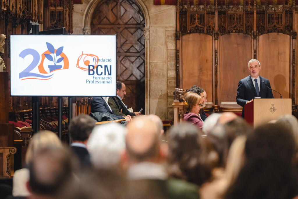 La Fundació BCN Formació Professional ha celebrat aquest vespre el seu 20è aniversari amb un acte institucional al Saló de Cent. L’esdeveniment, presidit per l’Excm. Sr. Jaume Collboni, alcalde de Barcelona i president honorari de la Fundació, ha reunit representants de l’àmbit educatiu, empresarial i social per fer balanç d’una trajectòria dedicada a connectar el món formatiu amb les necessitats del teixit productiu.
