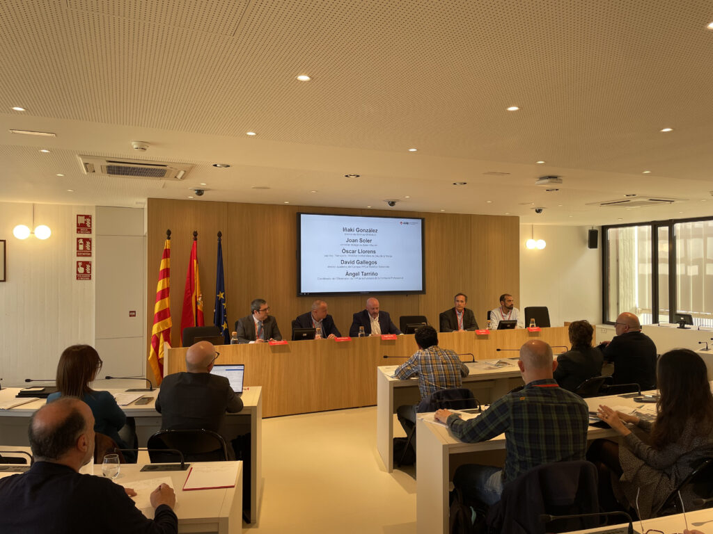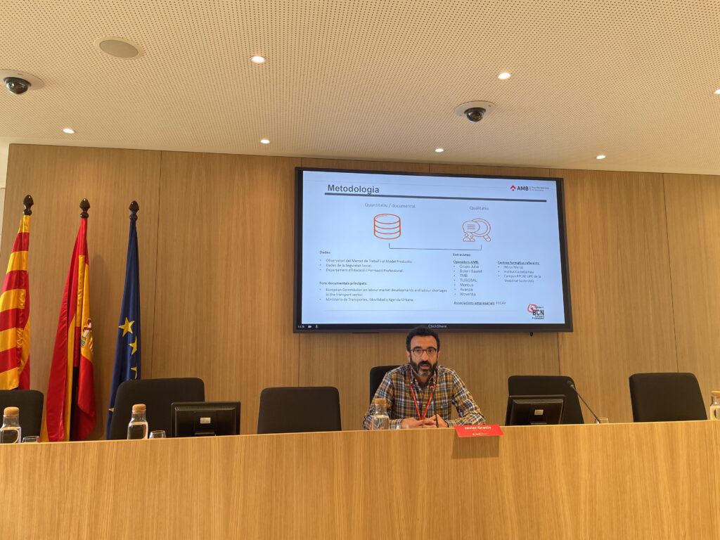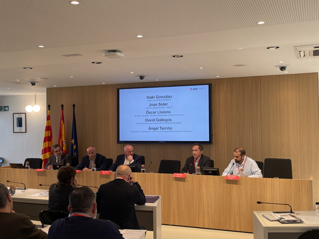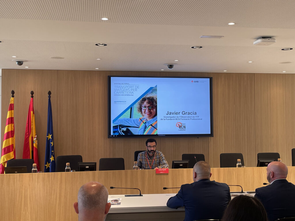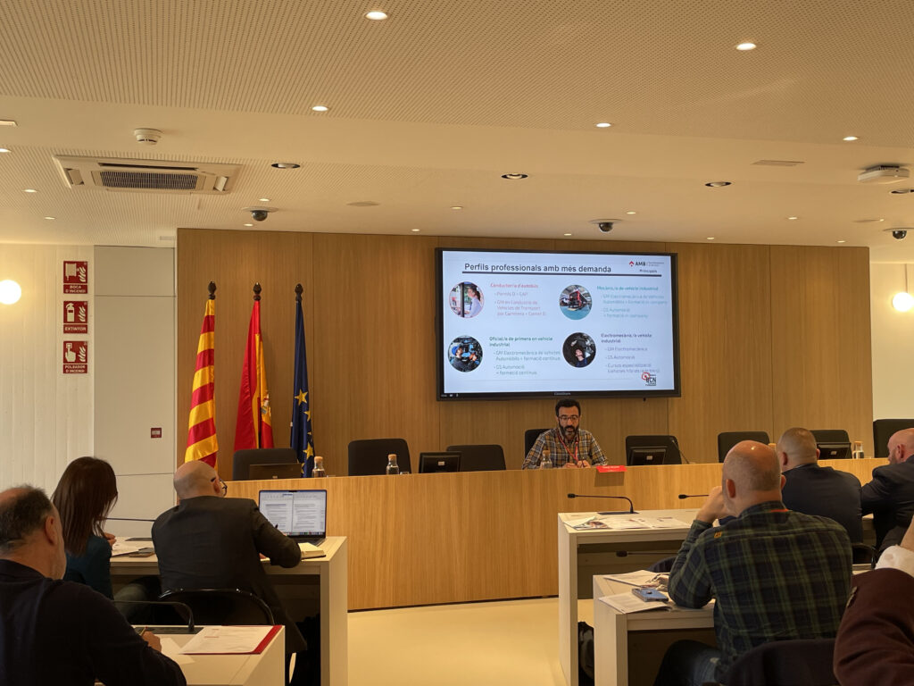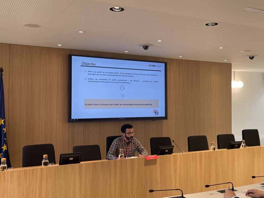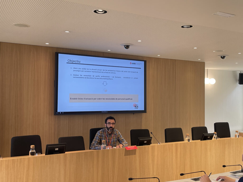 La seu de l’AMB ha acollit aquest matí la jornada Talent i transport de viatgers per carretera en la que s’ha presentat l’estudi del sector en clau formació professional, realitzat per l’Observatori de l’FP de la Fundació BCN Formació Professional d’acord amb l’AMB. A l’acte hi ha participat: Ester Pujol, directora de desenvolupament Social i Econòmic de l’AMB, Joan Maria Bigas, director de Mobilitat, Transport i Sostenibilitat de l’AMB. Han dirigit la presentació Javier Gracia, investigador de la recerca i tècnic de l’Observatori de l’FP i Àngel Tarriño, coordinador de l’Observatori de la Fundació BCN Formació Professional, que ha moderat la taula rodona amb representants del sector. La cloenda ha anat a càrrec de Francesc Roca, secretari de Formació Professional del govern de la Generalitat de Catalunya.